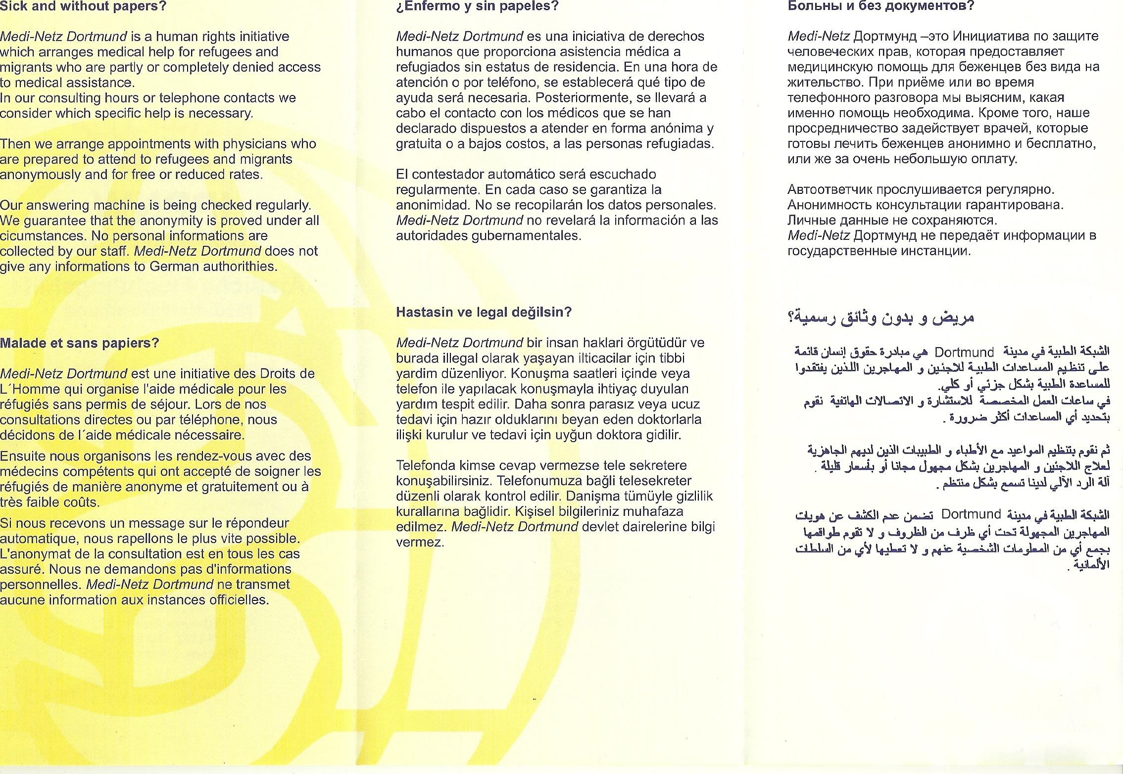 Mehrsprachiges Infoblatt der Ärtzlichen Flüchtlingshilfe Medi-Netz Dortmund der IPPNW-Gruppe Dortmund - Seite 2